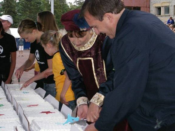 The vice mayor of Parnu came to thank the teams for attending and with Mr. Graham cut a section of the Peace Dream cake to symbolize a successful completion of the major part of the tournament.