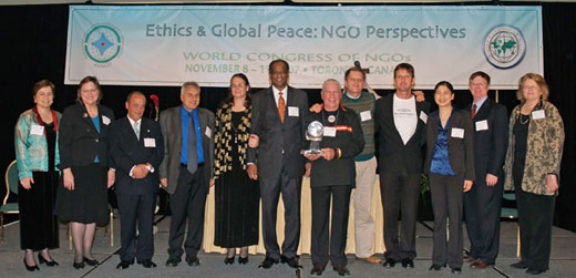 The 2007 WANGO Awards were presented in a format unique for a WANGO conference. Previous presentations at conferences were part of an “awards banquet.” The 2007 awards, held on Friday evening, were preceded by an Awards Reception, while the awards themselves were presented in a theatre style. Jean Rondon, WANGO’s Publications Director, served as Master of Ceremonies in the absence of Awards Chair Dr. Noel Brown, who was unavoidably stuck overseas when class=grame>a airline strike prevented his making the program in time. (The 2006 Awards, which were held independently of a conference, were presented in Spain in a similar manner, with a reception followed by the presentation of the awards in a theatre.)